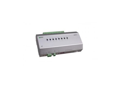 DSM0816為8回路、16A/回路開關控制模塊,適合于光源和非光源的任何類型負載的開關控制。控制器上有運行指示燈和對應回路狀態指示燈,通過旁路開關可直接對每個回路進行開關控制。控制器采用標準導軌安裝,接線采用高可靠的插拔式接線端子,使得其非常易于工程安裝與維護。 結合本地控制和回路狀態指示燈,調試非常簡單方便。控制器預留了一個緊急信號(例如消防)接口,這可以保證在緊急情況下對特殊照明設備的固定要求。
